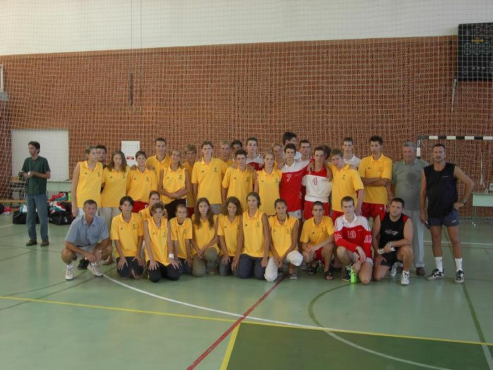 The boy and girl Hungarian National Team with the president of the Hungarian Volleyball Federation.