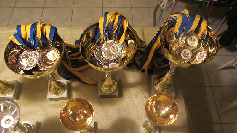 Ezek a kupák és érmek várták a csapatokat.