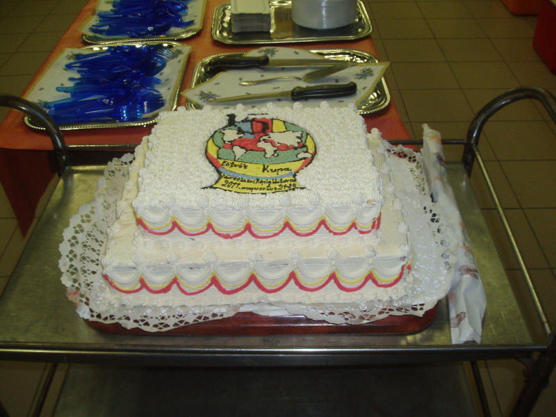 The hundred-sliced cake, with the emblem of the tournament, which was served on the friendly meeting.